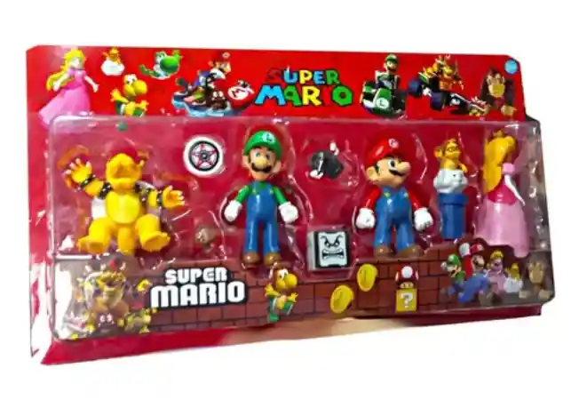 Descripción Acompaña a Mario y sus amigos en sus maravillosas aventuras, con este SET de 6 Figuras de los Personajes icónicos de Mario incluyendo Mario, Luigi, Bowser y un Yoshi Amarillo entre otros... ¡APROVECHA!: * Producto Nuevo, En su Empaque. * Contenido: 6 figuras. * Somos Distribuidores de la Marca. * Entregas el Mismo Día. (Bogotá) * Disponibles en las REF. y Colores Aptos para ELEGIR. * Brazos Articulados * TAMAÑO: 8cm (Aprox) * En su Blister * En PVC