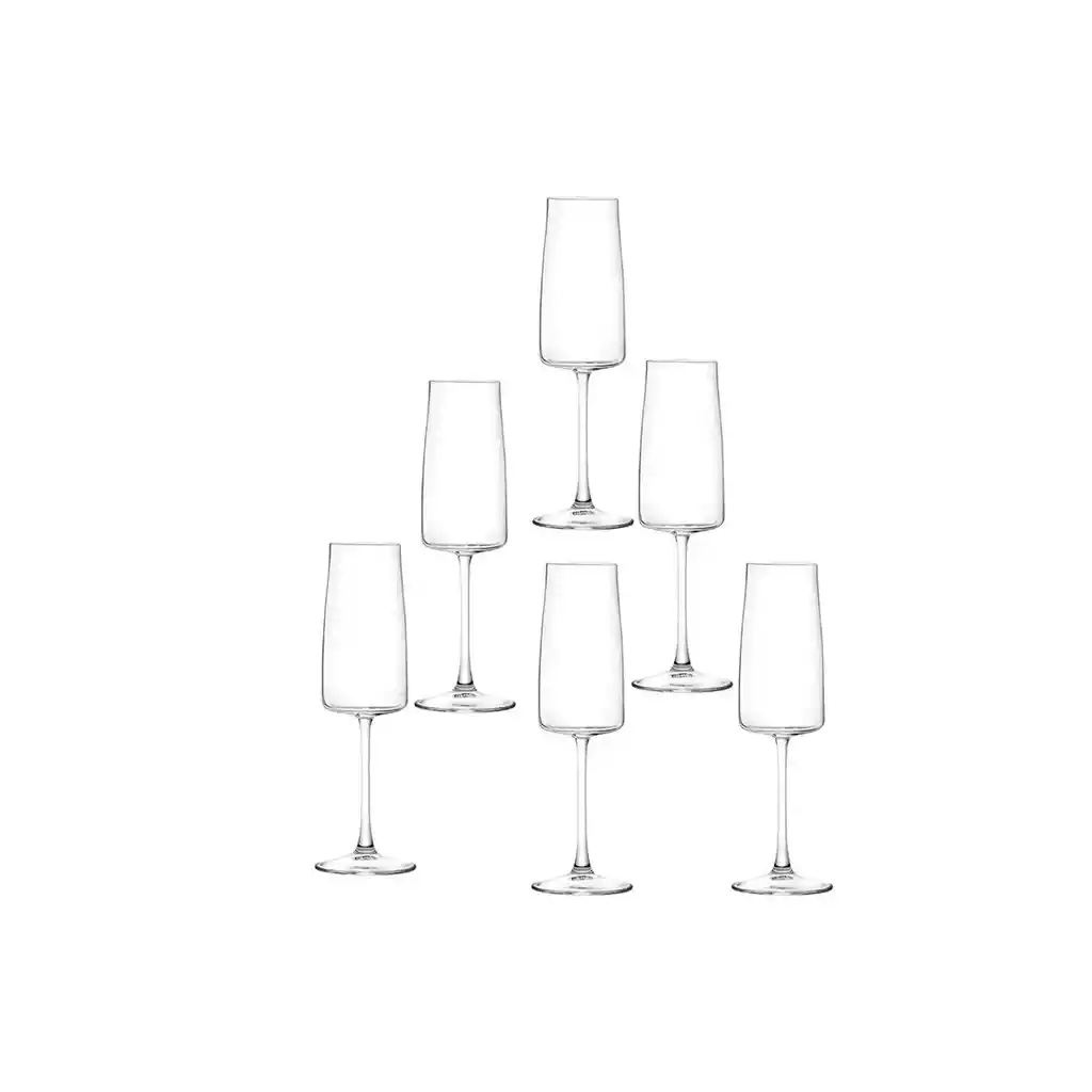 Fabricadas en cristal italiano prensado. Perfectas para champagne, espumantes o cócteles. Diseño sofisticado, armonico y funcional. Ofrecen alta resistencia, brillo y transparencia. No apto para microondas. Aptas para lavar en el lavavajillas. Material duradero y ecologico. Base firme para mayor estabilidad. Fácil de limpiar y mantener. No altera los sabores de ninguna manera. Capacidad de 300 ml por copa (10 onz). Uso doméstico o comercial. Resistente al uso continuo. La imagen ha sido ambientada; no incluye accesorios adicionales y el color puede variar según la iluminación.