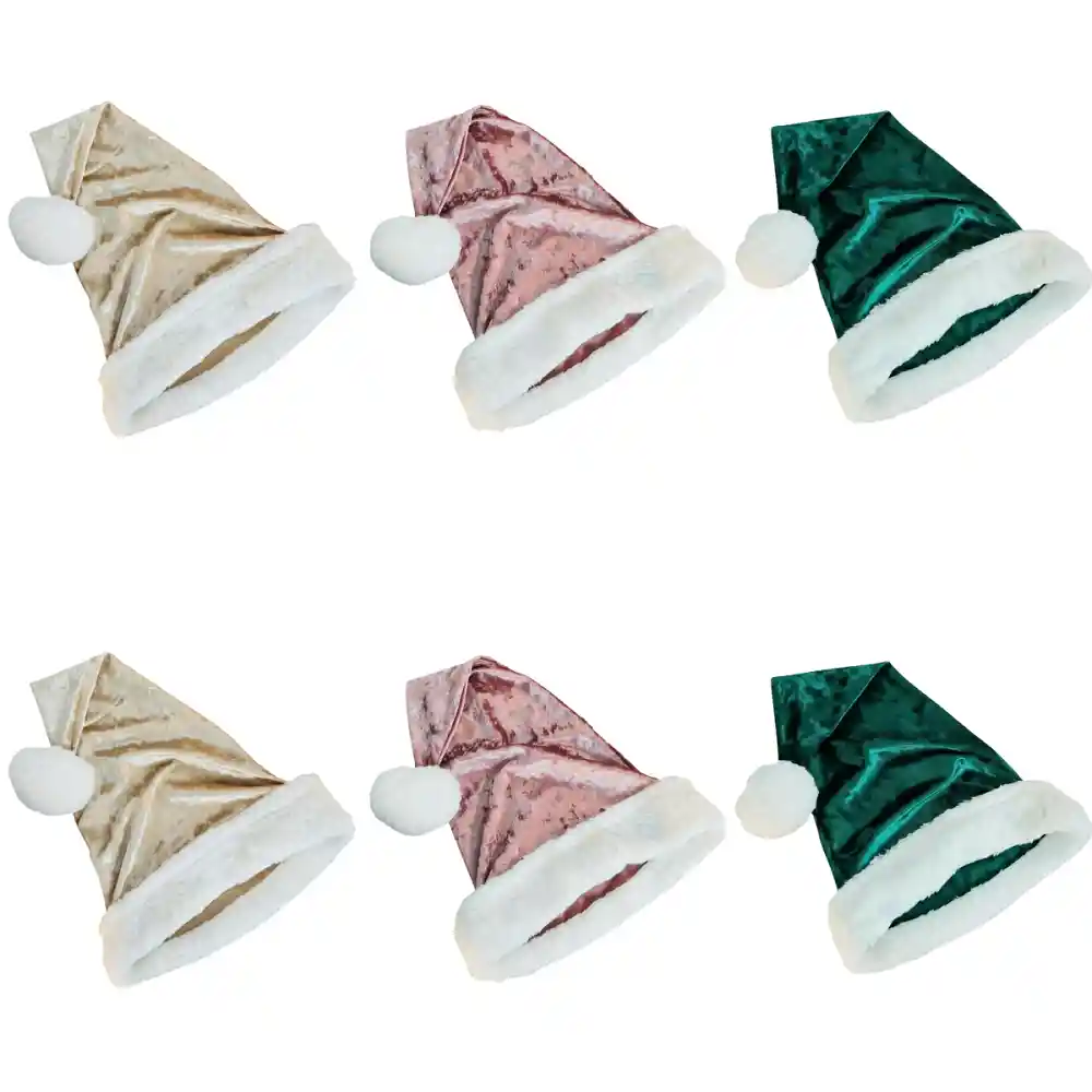 Set de Gorros Navideños en Terciopelo Incluye: 6 gorros navideños Talla: Estándar adulto (unisex) Material: Terciopelo suave de alta calidad y banda de ovejera Colores disponibles: Verde esmeralda, beige y palo rosa ¡Perfecto para lucir un estilo navideño elegante, moderno y lleno de magia! Ideal para usar en: - Novenas y reuniones familiares - Sesiones de fotos navideñas - Celebraciones de fin de año - Eventos en colegios, oficinas o fiestas temáticas - Regalos especiales o intercambios *Las imágenes de los productos pueden variar ligeramente en color respecto al producto real debido a la iluminación y las configuraciones de pantalla en diferentes dispositivos.