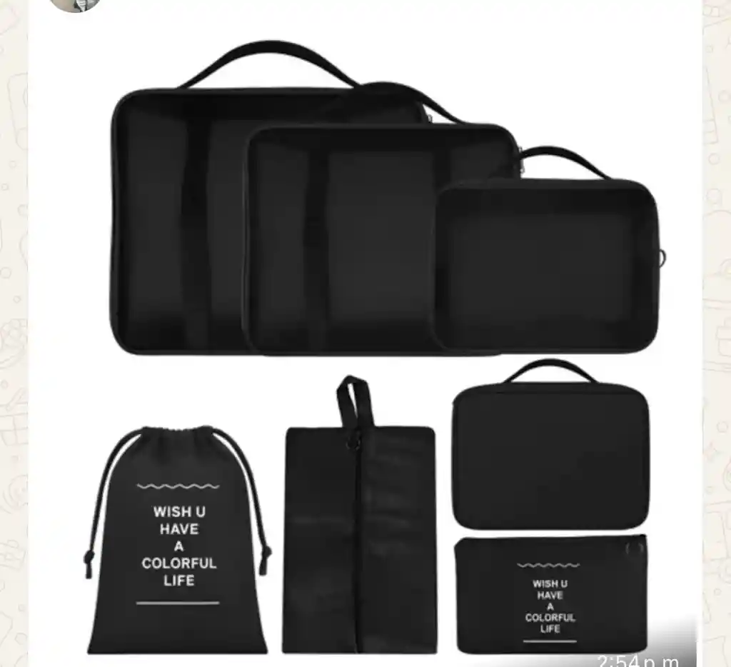 Set x7 Bolsas Organizadoras para Maleta Cubos Viaje Práctico – Empaca Fácil y Mantén Todo en Orden Viajar es mucho más sencillo con el Set x7 Bolsas Organizadoras para Maleta Cubos Viaje Práctico, diseñado para mantener cada prenda, accesorio o artículo de aseo en su lugar. Con diferentes tamaños y funciones, estos cubos y bolsas optimizan el espacio de tu maleta y te permiten encontrar todo rápidamente sin desordenar.