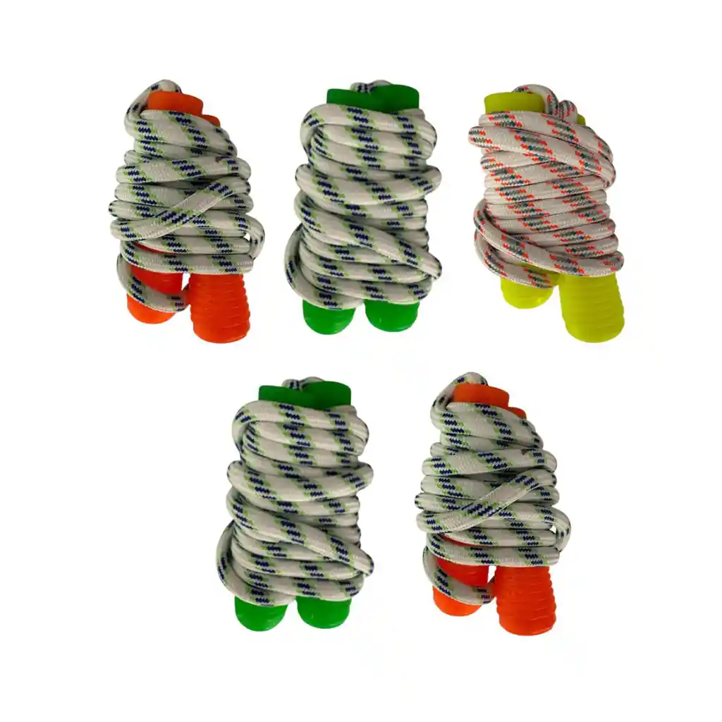 SETX5 LAZO CUERDA PARA SALTAR 260CM ECONÓMICO MANGO PLÁSTICO/ Colores Incluye 5 unidades de cuerda para saltar en un solo set, lo cual lo hace ideal si lo usas para clases grupales, colegio, gimnasio pequeño o para reemplazo frecuente. Cada cuerda tiene una longitud de aproximadamente 220 cm (2,20 m), lo que la hace apta para la mayoría de adultos e incluso adolescentes. Esta longitud permite un salto cómodo sin que la cuerda quede demasiado corta. Mango confeccionado en plástico resistente, de diseño sencillo pero funcional: ligero, fácil de agarrar, y de bajo mantenimiento. BENEFICIOS PARA EL USUARIO: - Mejora tu condición cardiovascular de forma sencilla: saltar la cuerda es un ejercicio eficaz para quemar calorías, entrenar ritmo, coordinación y resistencia. - Ideal para entrenamientos rápidos en casa, clases de educación física, calentamientos o como parte de tu rutina de fitness. - Gracias al mango de plástico ligero, el peso total es bajo, reduciendo la fatiga de muñecas durante sesiones prolongadas. - Muy buena opción para grupos, escuelas, entrenadores personales, gimnasios con múltiples usuarios. CARACTERÍSTICAS: - Longitud de la cuerda: ~220 cm (2,20m) - Material del mango: Plástico (tipo ABS o similar) - Material de la cuerda: Plástico tipo PVC o similar (o cuerda básica económica) - Set de: 5 unidades - Peso aproximado (por unidad): ligero (esto lo puedes medir si lo tienes) - Edad recomendada: adolescentes y adultos (y niños mayores supervisados) - Uso recomendado: fitness general, saltos, cardio, recreativo RECOMENDACIONES: - Usa en una superficie plana y libre de obstáculos para evitar tropiezos. - Lleva una postura erguida, con codos cerca del cuerpo y saltos suaves para proteger articulaciones. - Si buscas buen rendimiento, comienza con sesiones de 5-10 minutos y ve aumentando progresivamente. - Almacenamiento: guarda en lugar seco para prolongar la vida útil evita dejarlas a la intemperie directas al sol por largos periodos. **LA GARANTÍA CUBRE ÚNICAMENTE DEFECTOS ASOCIADOS A LA FABRICACIÓN DEL PRODUCTO O AL ESTADO DE LOS MATERIALES, CUALQUIER DAÑO CAUSADO POR USO, MANIPULACIÓN O MANTENIMIENTO INAPROPIADO DEL PRODUCTO, NO ESTÁ CONTEMPLADO DENTRO DE LA GARANTÍA. DISTRIBUIDOR AUTORIZADO Envíos a nivel nacional. ONE ZONE SPORT