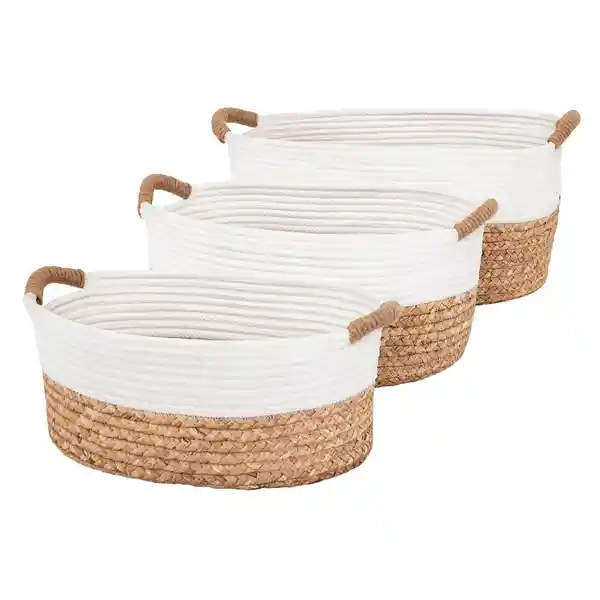 Set Seville Contiene 3 Unidades. de Canastas Decorativas Seville Classics Consta de Tres Piezas Cuidadosamente Elaboradas Con Jacinto de Agua Trenzado un Material Natural Conocido Por su Robustez y