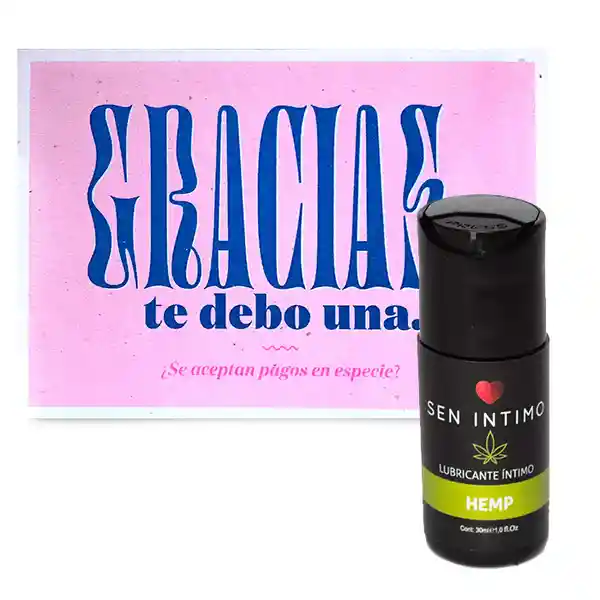 Tarjeta "Gracias te Debo Una. se Aceptan Pagos en Especie" 1 Unidad + Lubricante a Base de Cannabis 30 mL