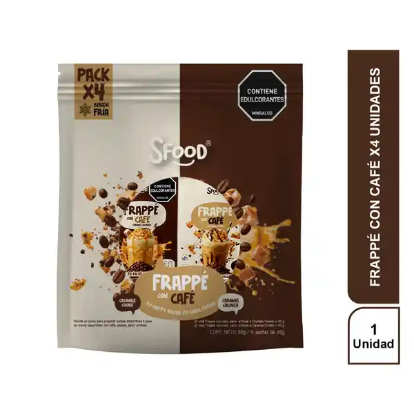 Pack Contiene 4 Unidades de 20 g c/u. De Frappé Con Café Instantáneo Para Preparar Frío. Sólo Requiere Adicionar Leche o Bebida Vegetal. Sabores 2 Unds Caramel Crunch y 2 Unds Crumble Cookie. Endulzado Con Alulosa.