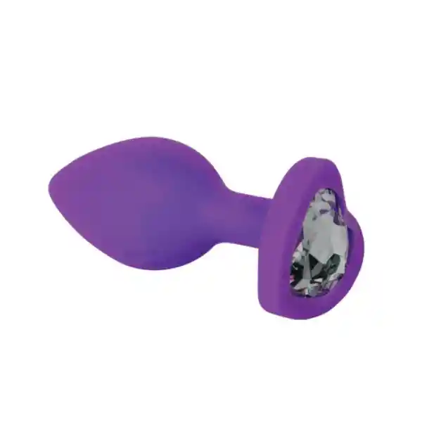 Descripción Plug anal en silicona médica de textura lisa y base en forma de corazón con joya en el centro. Características: Material: Silicona mèdica Color: Morado, joya transparente Largo total: 6.8 cm Largo insertable: 5.8 cm Diámetro: 2.4 cm Peso: 41 gr