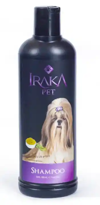 Shampo Iraka Pet Perros 350 ml, con extracto de henna Ayuda a mejorar la apariencia del pelo, aportando luminosidad, suavidad, humectación y nutrientes. Aplicar sobre las palmas de las manos y luego aplicarlo sobre el pelo de la mascota previamente humedecido y masajear suavemente por todo el cuerpo.