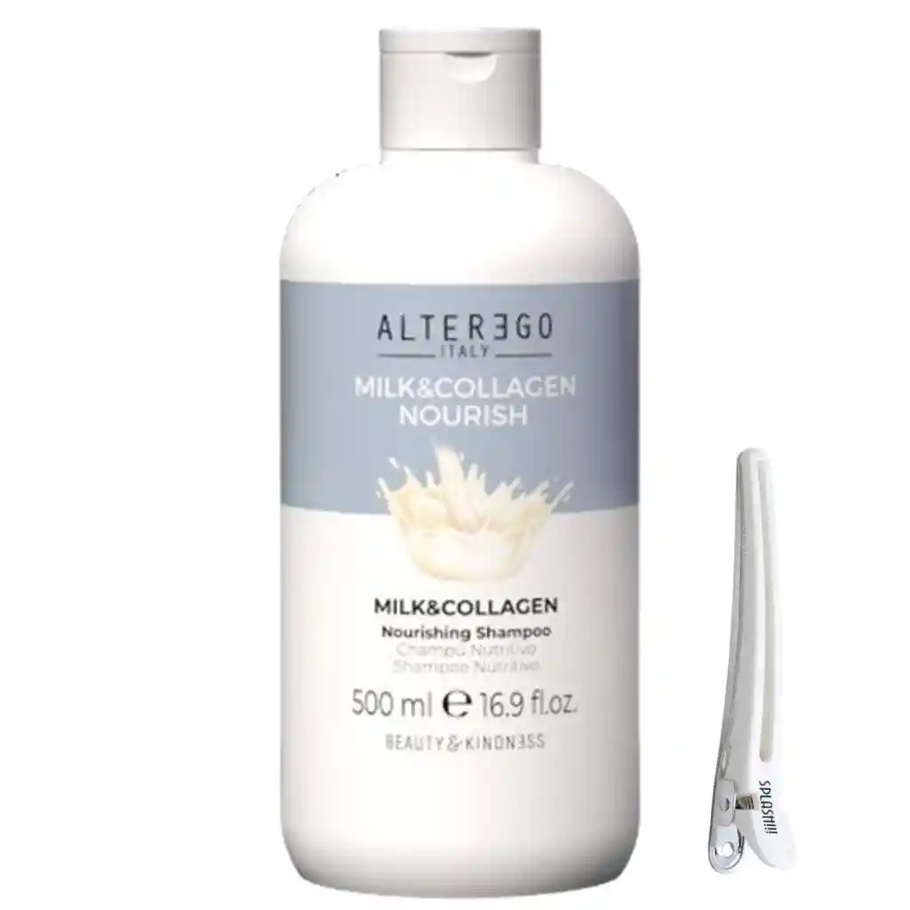La línea ideal para otorgar hidratación, nutrición y humectación a cabellos secos y tratados. Una línea completa para un ritual que devuelve suavidad, disciplina y luminosidad. CON: Proteínas de Leche, Colágeno, Manteca de Karité, Queratina. Shampoo Nutritivo 500ml: Shampoo hidratante, humectante y nutritivo. Enriquecido con proteínas de leche y colágeno de efecto nutritivo y suavizante, limpia el cabello dejándolo suave y luminoso. Obsequio: Pinza para el cabello, puede variar diseño y color