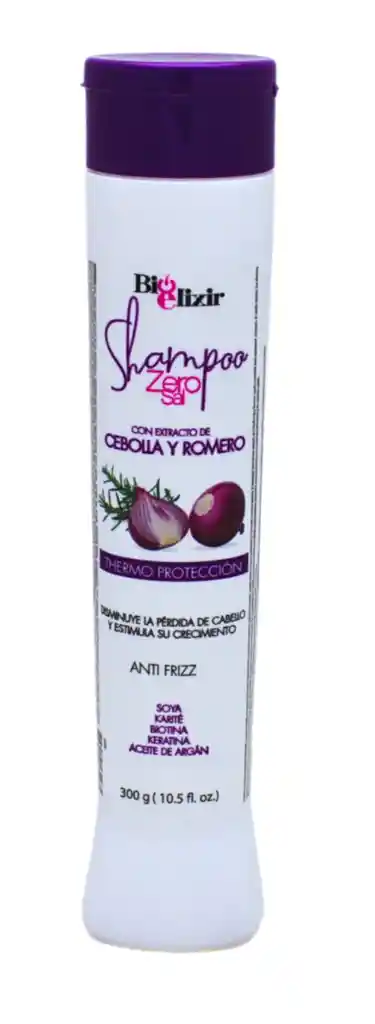 Cuando el cabello se expone a la luz solar, contaminación, tratamientos químicos, planchas y secador; puede volverse áspero, quebradizo y vulnerable a puntas abiertas. El shampoo Zero sal con extracto de cebolla roja y romero, ayuda a combatir estas agresiones y restaura el cabello dañado. Sus efectivos ingredientes ofrecen termo protección, reducción del frizz, disminuye la pérdida del cabello y estimula su crecimiento. Por su contenido de cebolla roja, romero, biotina, aceite de argán, keratina y soya entre otros proporciona una acción bioestimulante y de nutrición capilar.