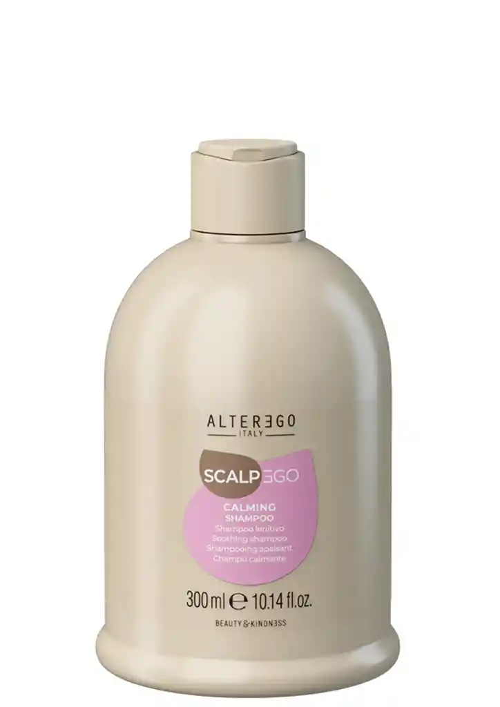 El Shampoo Calming de Alter Ego Italy es un limpiador ultra-gentil formulado para calmar instantaneamente las molestias del cuero cabelludo sensible. Su accion descongestionante ayuda a reducir la irritacion, el picor y la tirantez, devolviendo el equilibrio natural a la piel. Gracias a su formula rica en agentes calmantes, limpia el cabello sin agredir el manto hidrolipidico, dejando una sensacion de frescura y bienestar duradero. Atributos y Beneficios Tecnicos Extracto de Opuntia (Higo Chumbo): Ingrediente activo con potentes propiedades antiinflamatorias y antioxidantes que hidratan profundamente y calman la piel irritada. Tecnologia Urban Shield: Crea una pelicula protectora contra el smog y los agentes externos que suelen exacerbar la sensibilidad del cuero cabelludo. Accion Desensibilizante: Ideal para usar despues de servicios tecnicos (decoloraciones o tintes) que hayan dejado el cuero cabelludo ligeramente sensible o reactivo. Hidratacion Equilibrada: Aunque se enfoca en la piel, aporta la humedad necesaria para que el cabello quede suave, manejable y con brillo. Limpieza Micelar Gentil: Utiliza tensioactivos suaves que eliminan impurezas sin causar friccion ni irritacion adicional. Especificaciones del Producto Contenido Neto: 950 ml (Formato profesional). Tipo de Cabello/Piel: Cuero cabelludo sensible, reactivo, con picazon o post-quimicos. Formula Vegana: Libre de ingredientes de origen animal. Biodegradabilidad: Alto porcentaje de ingredientes que respetan el medio ambiente. Running Shopping, Somos especialistas en Belleza ; productos 100% Originales , garantizados y entregas rapidas !