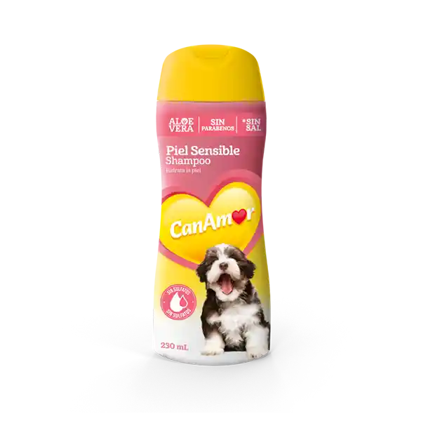 Shampoo Piel Sensible de CanAmor: cuidado Suave para tu Mejor Amigo CanAmor Shampoo Piel Sensible es la solución ideal para bañar a tu perro o cachorro con piel sensible. Su fórmula con alto poder hidratante de Aloe Vera nutre y calma la piel, previniendo la sequedad y la irritación.