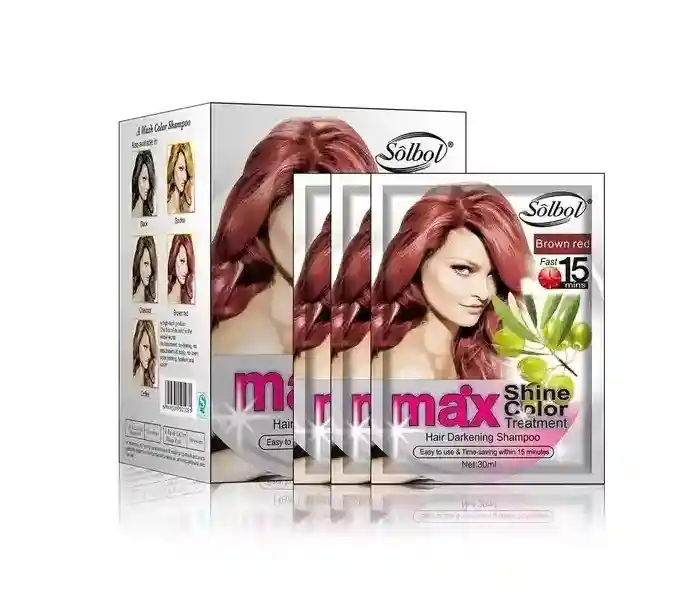 SHAMPOO COLOR SOLBOL BROWN RED Nueva tecnología que permite que la solución se absorba fácilmente y crea un color de cabello duradero. Contiene ingredientes a base de hierbas que ayudan a limpiar. proteger y teñir el cabello de forma saludable y eficaz sin ningún olor. Además de teñir el cabello. también reduce la caspa. la picazón y el cuero cabelludo graso. ¡Brinda brillo a tu cabello para hacerte lucir más joven que tu edad! •Cubre tu pelo gris con rapidez y eficacia •Proporcionar nutrientes esenciales a las raíces del cabello. •Reducir el cuero cabelludo graso y la caspa •Regenera el cabello delgado •Cabello suave y brillante Instrucciones: 1. Moje su cabello y use un par de guantes ( incluidos). 2. Vierta Shampoo Color en su cabello. 3. Masajear durante 15 minutos. 4. Es mejor dar masajes por más tiempo en la raíz de tu cabello. 5. Enjuague con agua y lave su cabello con champú. Observaciones: •Evite el contacto con los ojos. Si ocurre. lavar con agua. •Haga una prueba de alergia - masajee un poco en la raíz de la oreja. Si no hay picazón rojo en 24 horas. siéntase libre de usarlo en su cabello. •Adecuado tanto para hombres como para mujeres. •Muy recomendable para individuales con corona de pelo gris o amarillo. •Use este champú de 2 a 3 veces al mes para obtener un cabello negro. marrón o castaño ideal.