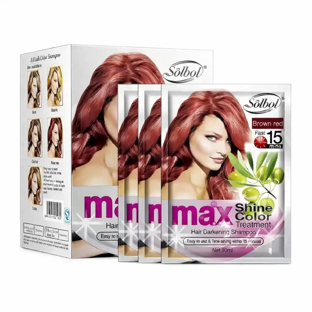 SHAMPOO COLOR SOLBOL BROWN RED Nueva tecnología que permite que la solución se absorba fácilmente y crea un color de cabello duradero. Contiene ingredientes a base de hierbas que ayudan a limpiar. proteger y teñir el cabello de forma saludable y eficaz sin ningún olor. Además de teñir el cabello. también reduce la caspa. la picazón y el cuero cabelludo graso. ¡Brinda brillo a tu cabello para hacerte lucir más joven que tu edad! •Cubre tu pelo gris con rapidez y eficacia •Proporcionar nutrientes esenciales a las raíces del cabello. •Reducir el cuero cabelludo graso y la caspa •Regenera el cabello delgado •Cabello suave y brillante Instrucciones: 1. Moje su cabello y use un par de guantes ( incluidos). 2. Vierta Shampoo Color en su cabello. 3. Masajear durante 15 minutos. 4. Es mejor dar masajes por más tiempo en la raíz de tu cabello. 5. Enjuague con agua y lave su cabello con champú. Observaciones: •Evite el contacto con los ojos. Si ocurre. lavar con agua. •Haga una prueba de alergia - masajee un poco en la raíz de la oreja. Si no hay picazón rojo en 24 horas. siéntase libre de usarlo en su cabello. •Adecuado tanto para hombres como para mujeres. •Muy recomendable para individuales con corona de pelo gris o amarillo. •Use este champú de 2 a 3 veces al mes para obtener un cabello negro. marrón o castaño ideal.