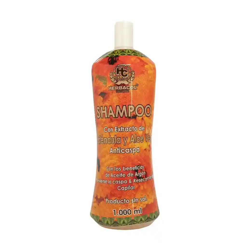 shampoo con extracto de caléndula y aloe vera anticaspas con los beneficios de aceite de argán previene la caspa y resecamiento capilar.