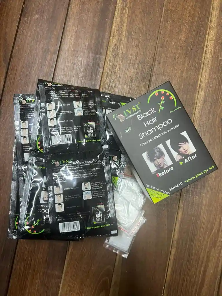 Shampoo cubre canas Black Hair: solución efectiva para lucir un cabello más joven ¿Te sientes incómodo con tus canas y quieres darle a tu cabello una apariencia más juvenil? ¡Nuestro shampoo cubre canas Black Hair es la solución que buscas! Nuestra fórmula avanzada está diseñada para cubrir eficazmente las canas y dejar tu cabello suave y manejable. Olvídate de los complicados procesos de teñido y decoloración, nuestro shampoo te ofrece una forma rápida y fácil de darle a tu cabello una apariencia más joven y saludable. ¿Cómo funciona nuestro shampoo cubre canas Black Hair? La fórmula contiene ingredientes especiales que se adhieren al cabello para proporcionar una cobertura uniforme y duradera de las canas. Además, su uso regular ayuda a fortalecer el cabello y a prevenir la pérdida de cabello. La aplicación de nuestro Shampoo es muy sencilla. Simplemente humedece tu cabello, aplica el Shampoo y masajea suavemente el cuero cabelludo. Deja actuar durante unos minutos y enjuaga con agua tibia. ¡Así de fácil! Además, nuestro Shampoo no contiene químicos agresivos, lo que lo hace seguro para su uso en cualquier tipo de cabello. Logra Cabello negro con este revolucionario Shampoo que cubre el tono gris sin complicaciones, ayudando a dar a tu cabello un tono de color más oscuro con un aspecto sedoso y brillante. Ahorra tiempo y dinero: olvídate de las largas y costosas visitas a los salones de belleza💸. Ahora puedes teñir tu cabello rápida y fácilmente en casa por ti mismo y ahorrar mucho dinero. 🎋Fórmula herbal y natural 🎋Color Negro 🎋Deja el cuero cabelludo limpio. 🎋No destiñe ni mancha tu ropa. 🎋Es fácil de usar y rápido de aplicar. 🎋Tiene un fresco olor relajante a plantas. 🎋No tiene amoniaco ni químicos. 🎋En 5 minutos cambia el color. 🎋Uso unisex. Nota: 1. Si su cabello es abundante permítale actuar más tiempo. Para este caso se sugiere aplicarse 2 sobres como mínimo la primera vez, después en la próxima aplicación solo requerirás 1 sobre. 2. Para mayor efectividad, asegúrese no tener ningún tipo de tinte aplicado en su cabello. El éxito del Black Hair Shampoo consiste en ser aplicado en un cabello al natural. 3. En el proceso de enjuague, recomendamos lavarse con su Shampoo de preferencia uso diario para limpiar profundamente y eliminar los rastros de tinte que le hayan podido quedar. Recuerde dejar secar muy bien su cabello al finalizar el proceso. Con nuestro Shampoo cubre canas Black Hair, podrás lucir un cabello más joven y saludable en cuestión de minutos. Ya no tendrás que preocuparte por esconder tus canas o gastar grandes cantidades de dinero en costosos tratamientos de belleza. ¡Prueba nuestro Shampoo hoy y sorpréndete con los resultados!