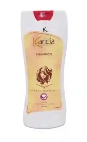 Descripción Descripción SHAMPOO KARICIA DAMA El shampoo Karicia con arándanos negros, nutre profundamente el cabello de la raíz a la punta, fortalece, reestructura, combate la caida y promueve el crecimiento. Está hecho a base de: Colágeno, Vitamina E, Aloe Vera, proteína de soya, ortiga, ginseng y biotina. Es un producto diseñado para mujeres que aman ver su cabello hermoso, en el mejor estado y cuidados con los mejores productos. ¿Cómo usarlo? Aplica el shampoo Karicia sobre el cabello húmedo, masajea suavemente el cuero cabelludo con masajes circulares y enjuagar con abundante agua. Se recomienda repetir el procedimiento. Producto de uso externo, evita el contacto con los ojos. No aplicar sobre cuero cabelludo irritado. Mantener fuera del alcance de los niños y las mascotas.