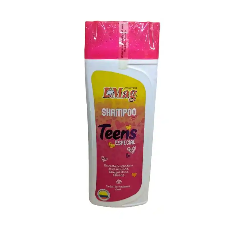 SHAMPOO DMAG TEENS 430 ML : especialmente para niñas ; Es un efectivo tratamiento capilar que le brindara al cabello de tu niña brillo y suavidad evitando su caída, con sus efectivos componentes logras un crecimiento permanente del cabello y efecto antifrizz. - Prevención caida. ... - Deja el cabello sedoso, brillante y flexible. - Libre de sal y parabenos.