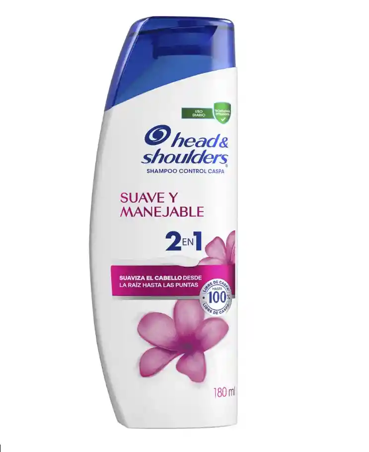 El Shampoo Head & Shoulders 2 en 1 Suave es la solución perfecta para quienes buscan practicidad sin sacrificar resultados. Su fórmula combina shampoo y acondicionador en un solo paso, limpiando profundamente mientras hidrata el cabello desde la raíz, dejándolo visiblemente más suave, manejable y saludable desde el primer uso. Al aplicarlo, se siente una espuma cremosa con un aroma fresco y agradable que envuelve el cabello, brindando una sensación de limpieza total que realmente se disfruta. Su acción ayuda a eliminar la caspa visible con el uso regular, mientras controla el frizz y facilita el peinado, dejando el cabello ligero, suelto y con movimiento natural. Es ideal para el uso diario, especialmente si buscas optimizar tu rutina sin perder calidad en el cuidado capilar. Su fórmula dermatológicamente probada limpia sin resecar, aportando equilibrio al cuero cabelludo y manteniendo el cabello con una apariencia saludable y bien cuidada. Su presentación de 180 mL es práctica y perfecta para llevar o tener siempre a la mano. Si buscas un shampoo que te ofrezca frescura, suavidad y control de caspa en un solo producto, esta es una elección que realmente vale la pena para tu día a día.