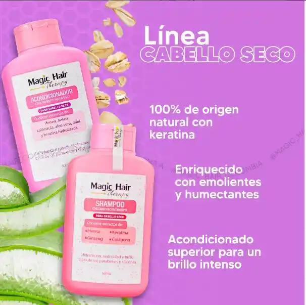 El Shampoo para crecimiento del cabello seco sin sal de Magic Hair, enriquecido con extractos naturales seleccionados que revitalizan, fortalecen, dan crecimiento y cuidan el cabello seco maltratado.