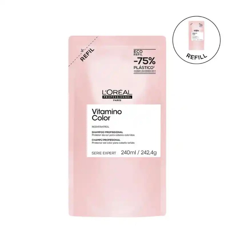 El shampoo Vitamino Color Loreal para cabello coloreado tiene ingredientes para el cuidado que eliminan suavemente las impurezas a la vez que protegen el cabello coloreado. Su textura cremosa se transforma en una espuma abundante para mantener la fuerza de las fibras capilares desde las raíces hasta las puntas. El Shampoo Vitamino Color está creado para cabellos tinturados. L'Orea Professionnel Paris Serie Expert L’Oreal Professionnel Serie Expert VITAMINO COLOR, para un cabello con color radiante. INGREDIENTES PRINCIPALES RESVERATROL: Es un poderoso antioxidante que protege el cuero cabelludo, reestablece el PH y fortalece el cabello. PANTENOL: También conocido como provitamina B5 es un eficaz hidratante, protector y calmante del cabello y el cuero cabelludo. BENEFICIOS VITAMINO COLOR DE L’OREAL Protege el color de las fibras capilares Preserva la Fibra Aporta suavidad al instante Otorga hasta 8 semanas de protección del color Brinda hasta 6 veces más brillo CONSEJOS DE APLICACIÓN SHAMPOO VITAMINO COLOR Aplicar el shampoo Vitamino Color LOreal 300ml de manera uniforme sobre el cabello mojado. Asegurese de realizar espuma en todo el cuero cabelludo. Enjuague bien con abundante agua y aplique dos veces: Primera para limpiar, segunda para tratar. En caso de contacto con los ojos, enjuáguelos inmediatamente.
