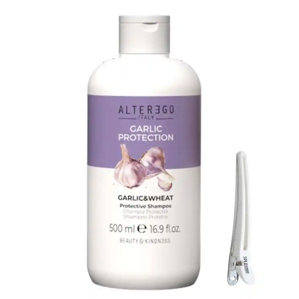 Shampoo Protector: Shampoo de reestructuración y protector para cabellos tratados, decolorados, estresados y permanentados. Limpia la piel cabelluda y el cabello brindando una sensación de suavidad y vitalidad, con un delicioso aroma (No huele a ajo). 500 ml Modo de Uso Aplicar sobre la piel cabelluda mojada, dejar actuar 2 a 3 minutos, enjuagar y repetir la aplicación.