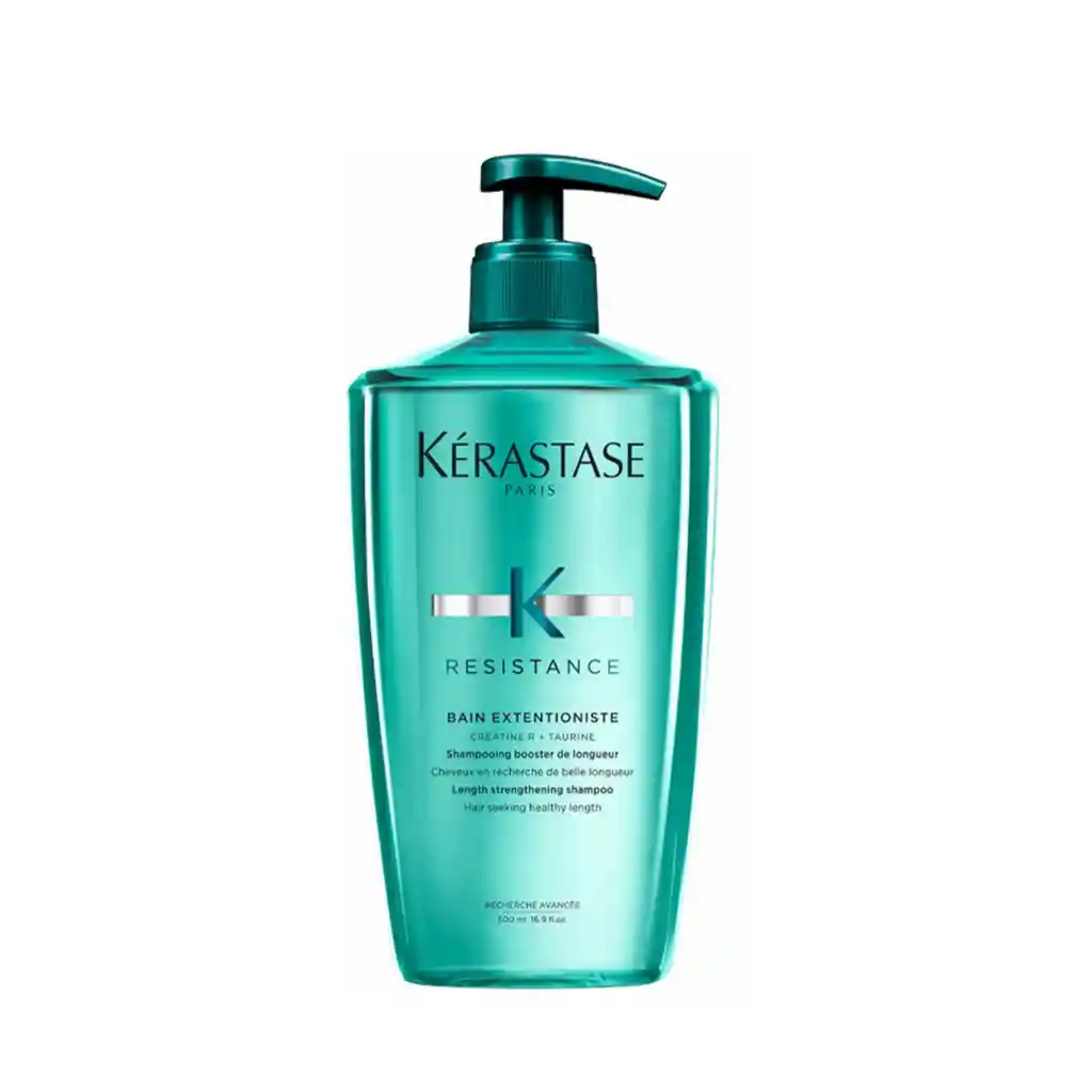 Shampoo Resistance Bain Extentioniste 500ml es un fortalecedor que estimula el crecimiento del cabello fuerte desde la raíz. DESCRIPCIÓN COMPLETA SHAMPOO BAIN EXTENTIONISTE KÉRASTASE RESISTANCE – REPARA LOS EFECTOS DEL PEINADO CON CALOR Y PREVIENE LA ROTURA DEL CABELLO Kérastase Resistance: Limpieza para cabello maltratado y sin fuerza El Shampoo Kerastase Resistance Bain Extentioniste 500ml es un fortalecedor que estimula el crecimiento del cabello fuerte desde la raíz. Tratamiento para Crecimiento del cabello. El cabello debilitado propenso a quebrarse se fortalece a medida que su estructura interna se reconstruye y sella para proporcionar una mayor protección durante todo su crecimiento. Rutina Extentioniste La rutina Extentioniste se aplica en raíces, largos y puntas. Estimula el cuero cabelludo, luego desenreda suavemente los largos mientras refuerza y finalmente sella las puntas para obtener un cabello fuerte tanto en las puntas como en la raíz. INGREDIENTES PRINCIPALES La creatina R es un complejo exclusivo compuesto por creatina + ceramida: el aminoácido implícito en el refuerzo de la estructura interna de la fibra + los lípidos responsables de la recuperación de la superficie del cabello. Como complemento con una acción específica, la fórmula está enriquecida con ácido maleico, pequeñas partículas que penetran en la fibra para reforzar y sellar las cutículas creando un recubrimiento uniforme desde la raíz hasta las puntas. BENEFICIOS Aumenta la elasticidad y la fuerza desde la raíz hasta las puntas Reconstruye la fuerza natural de la fibra capilar Purifica y estimula un ambiente sano para el cuero cabelludo CONSEJO DE APLICACIÓN Aplicar a cuero cabelludo con movimientos de masaje circular. Enjuagar. Volver a aplicar.