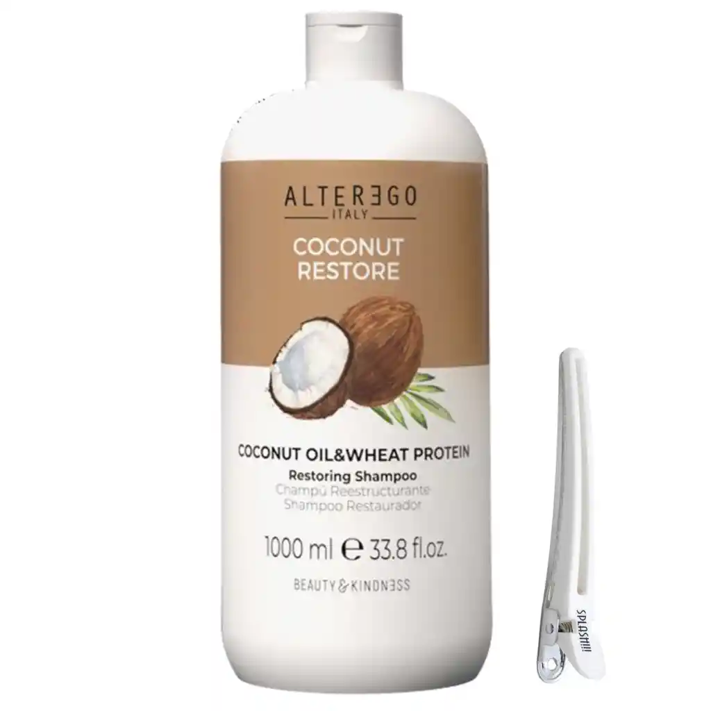 Coconut Restore Shampoo: Shampoo formulado para cabellos tratados quimicamente y desfibrados. Limpia, suaviza y desenreda el cabello. Aplicar en el cabello húmedo, masajear, dejar actuar de 1 a 3 minutos y enjuagar. Repetir la aplicación. Shampoo: 1000ml