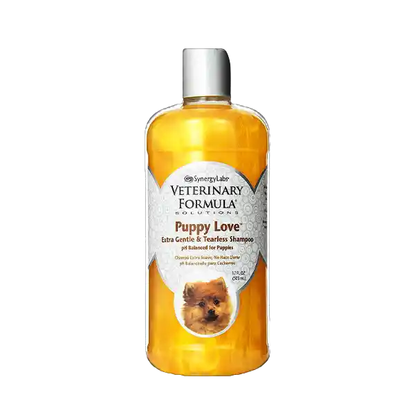 Shampoo para cachorros con pH balanceado. No irrita los ojos ni seca la piel.