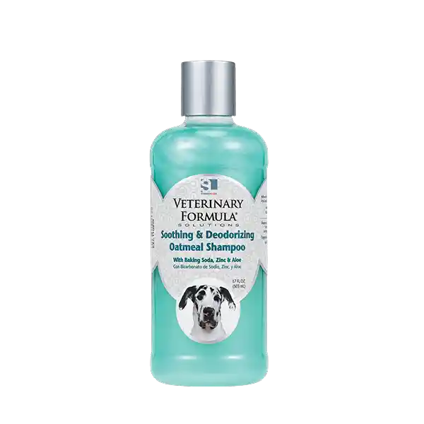 Shampoo de avena, calmante y desodorizante con bicarbonato de sodio, zinc y aloe. Ideal para pieles y pelajes secos, irritados o con mal olor.