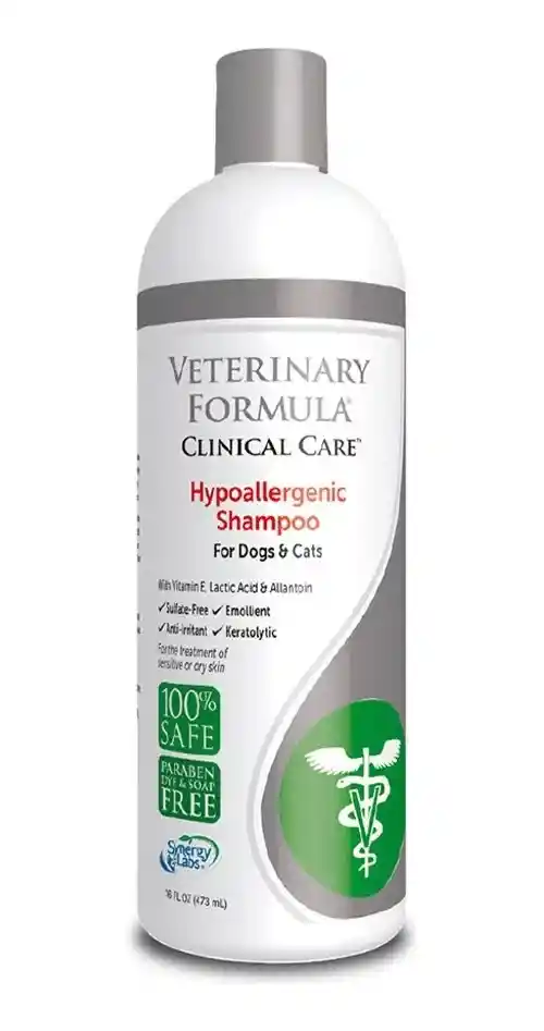 El champú hipoalergénico Veterinary Formula Clinical Care fue formulado científicamente con los limpiadores más suaves a base de coco y sin ingredientes agresivos, colorantes ni fragancias, por lo que no irritará la piel sensible. Ideal para mascotas con alergias conocidas. La fórmula suave y sin lágrimas es ideal para mascotas con alergias o piel sensible. Con ingredientes suaves para promover una piel saludable.