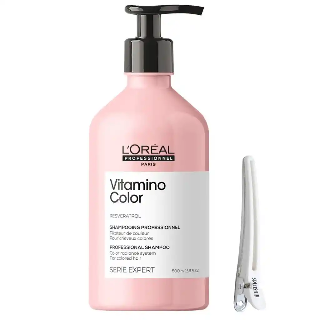 Loreal Vitamino Color Shampoo: PARA UN COLOR RADIANTE SHAMPOO: Este shampoo profesional limpia suavemente el cabello con color y hace que el color dure hasta 8 semanas*. El cabello con color es 6* veces más brillante y luce más radiante. El cabello se siente más ligero, manejable y suave. Fórmula enriquecida con resveratrol, un poderoso antioxidante para un cabello con color perfecto de salón. *shampoo + acondicionador Modo de empleo: aplicar uniformemente sobre el cabello mojado y masajee hasta hacer espuma. Enjuague bien. Repita el proceso si es necesario. En caso de contacto con los ojos, enjuáguelos inmediatamente. Para Cabello teñido -Protección del color contra la decoloración, 6 veces más brilloso 8 semanas de protección del color