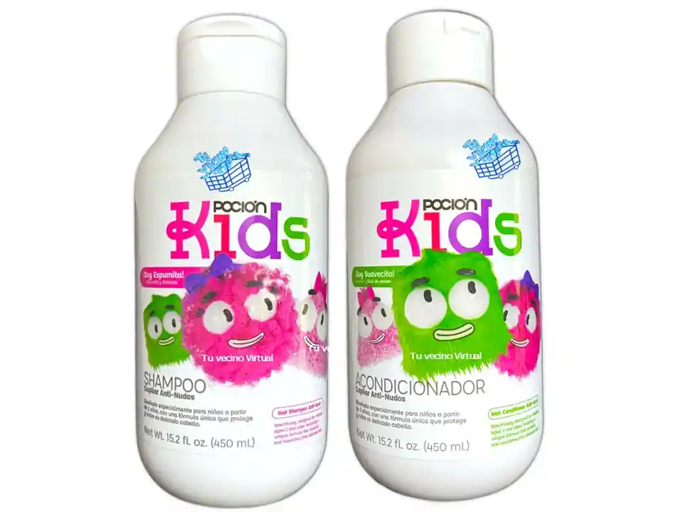 En tu vecino virtual también encontraras : Anyeluz, syam cosmetic, piel de oro, Kaba, class gold, lampiña, Te verde de matcha Benefit, te plus, te latte, te negro, exfoliante, aceite de coco, pomada alfa, colageno hidrolizado,vinipel osmótico, Bioaqua Acne, Mascarillas,tónico, Trendy, la pocion, HGW y muchos mas ————————————————————————————————————————————————— ———————————————————————————————————— ACONDICIONADOR Capilar Anti-Nudos Diseñado especialmente para niños a partir de dos años con una fórmula única que protege y nutre su delicado cabello. El complemento perfecto después del shampoo. Nuestro Acondicionador capilar POCIÓN KIDS brindando hidratación, brillo y un toque sedoso con cada aplicación. Su acción anti-nudos facilita el desenredo, sin tirones ni maltratos, protege el cabello dejándolo saludable y manejable. Cuidado seguro y delicado, ideal para proteger la fibra capilar y mantener el cabello fuerte, saludable y libre de enredos todos los días. MODO DE USO: Con el cabello limpio y húmedo aplica distribuyendo de medios a puntas, deja actuar de 3 a 5 minutos para un mejor resultado. Enjuaga con abundante agua. PRECAUCIONES: Solo para uso externo. Evitar el contacto con los ojos, en tal caso, enjuagar con abundante agua. Suspenda su uso si observa alguna reacción desfavorable, si esta persiste, consulte a un médico. ADVERTENCIAS: Mantener fuera del alcance de los niños. Conservar en un lugar fresco, seco y protegido de la luz. Extracto del fruto de coco, que contiene una emulsión de ácidos grasos, proteínas, vitaminas y azucares. ———————————————————————————————————— SHAMPOO Capilar Anti-Nudos Diseñado especialmente para niños a partir de dos años con una fórmula única que protege y nutre su delicado cabello. Shampoo capilar POCIÓN KIDS, brinda una limpieza suave y segura que mantiene el equilibrio natural del cuero cabelludo sin alterar su pH gracias a sus delicados agentes limpiadores. Su fórmula, libre de sulfatos, parabenos y sal', garantiza una limpieza sin irritación mientras hidrata, fortalece y nutre el cabello a través de sus iingredientes naturales. MODO DE USO: Humedece el cabello, aplica y distribuye sobre el cuero cabelludo realizando masajes circulares con la yema de los dedos, enjuaga y repite el proceso en caso de ser necesario. PRECAUCIONES: Solo para uso externo. Evitar el contacto con los ojos, en tal caso, enjuagar con abundante agua. Suspenda su uso si observa alguna. reacción desfavorable, si esta persiste, consulte a un médico. ADVERTENCIAS: Mantener fuera del alcance de los niños. Conservar en un lugar fresco, seco y protegido de la luz.