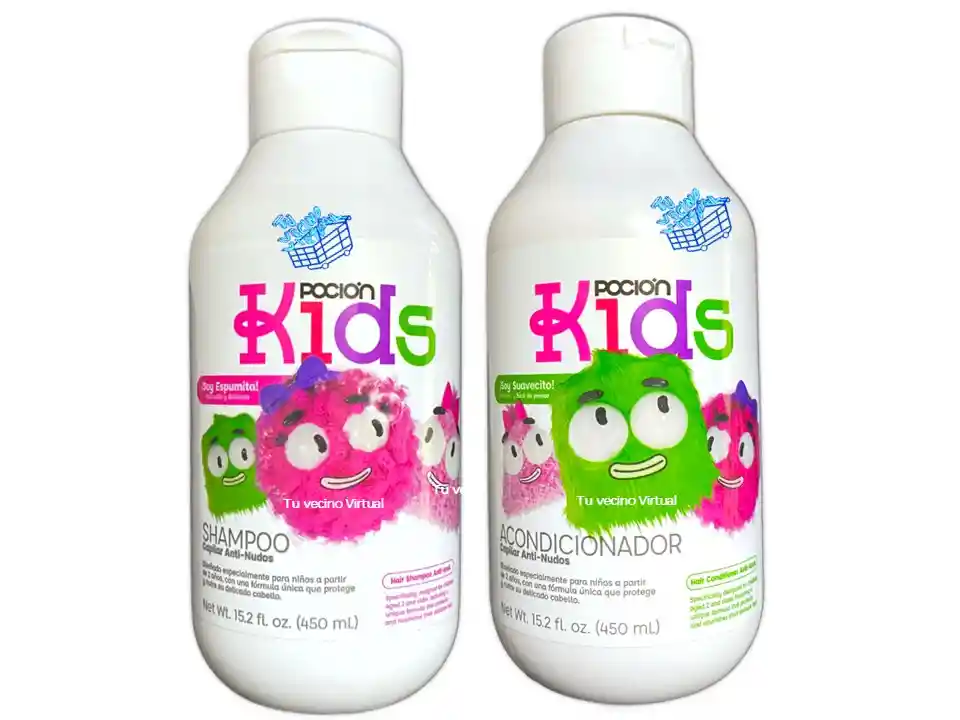 En tu vecino virtual también encontraras : Anyeluz, syam cosmetic, piel de oro, Kaba, class gold, lampiña, Te verde de matcha Benefit, te plus, te latte, te negro, exfoliante, aceite de coco, pomada alfa, colageno hidrolizado,vinipel osmótico, Bioaqua Acne, Mascarillas,tónico, Trendy, la pocion, HGW y muchos mas ————————————————————————————————————————————————— ———————————————————————————————————— SHAMPOO Capilar Anti-Nudos Diseñado especialmente para niños a partir de dos años con una fórmula única que protege y nutre su delicado cabello. Shampoo capilar POCIÓN KIDS, brinda una limpieza suave y segura que mantiene el equilibrio natural del cuero cabelludo sin alterar su pH gracias a sus delicados agentes limpiadores. Su fórmula, libre de sulfatos, parabenos y sal', garantiza una limpieza sin irritación mientras hidrata, fortalece y nutre el cabello a través de sus iingredientes naturales. MODO DE USO: Humedece el cabello, aplica y distribuye sobre el cuero cabelludo realizando masajes circulares con la yema de los dedos, enjuaga y repite el proceso en caso de ser necesario. PRECAUCIONES: Solo para uso externo. Evitar el contacto con los ojos, en tal caso, enjuagar con abundante agua. Suspenda su uso si observa alguna. reacción desfavorable, si esta persiste, consulte a un médico. ADVERTENCIAS: Mantener fuera del alcance de los niños. Conservar en un lugar fresco, seco y protegido de la luz. ———————————————————————————————————— ACONDICIONADOR Capilar Anti-Nudos Diseñado especialmente para niños a partir de dos años con una fórmula única que protege y nutre su delicado cabello. El complemento perfecto después del shampoo. Nuestro Acondicionador capilar POCIÓN KIDS brindando hidratación, brillo y un toque sedoso con cada aplicación. Su acción anti-nudos facilita el desenredo, sin tirones ni maltratos, protege el cabello dejándolo saludable y manejable. Cuidado seguro y delicado, ideal para proteger la fibra capilar y mantener el cabello fuerte, saludable y libre de enredos todos los días. MODO DE USO: Con el cabello limpio y húmedo aplica distribuyendo de medios a puntas, deja actuar de 3 a 5 minutos para un mejor resultado. Enjuaga con abundante agua. PRECAUCIONES: Solo para uso externo. Evitar el contacto con los ojos, en tal caso, enjuagar con abundante agua. Suspenda su uso si observa alguna reacción desfavorable, si esta persiste, consulte a un médico. ADVERTENCIAS: Mantener fuera del alcance de los niños. Conservar en un lugar fresco, seco y protegido de la luz. Extracto del fruto de coco, que contiene una emulsión de ácidos grasos, proteínas, vitaminas y azucares.
