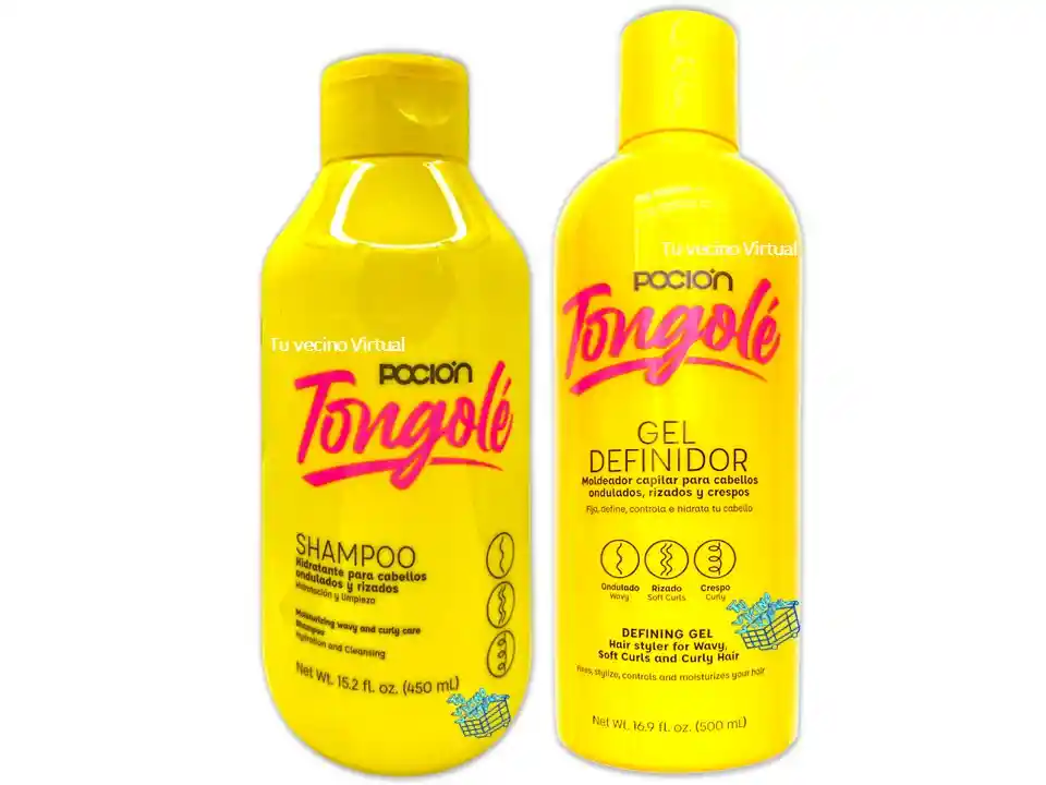 En tu vecino virtual también encontraras : Anyeluz, syam cosmetic, piel de oro, Kaba, class gold, lampiña, Te verde de matcha Benefit, te plus, te latte, te negro, exfoliante, aceite de coco, pomada alfa, colageno hidrolizado,vinipel osmótico, Bioaqua Acne, Mascarillas,tónico, Trendy, la pocion, HGW y muchos mas ————————————————————————————————————————————————— ------------------------------------------------------------------------------------------------------ Gel Definidor de Rizos Tongolé El Gel Definidor de Rizos es el aliado perfecto para unas ondas y rizos definidos, hidratados y con movimiento natural. Su fórmula avanzada proporciona un 41% más de definición y 40% más de duración en comparación con otros geles del mercado, asegurando una fijación impecable por 24 horas sin sensación pegajosa ni rigidez. Enriquecido con extracto de tamarindo y otros ingredientes hidratantes, mantiene la humectación del cabello, evitando la resequedad y dejando los rizos flexibles, con un acabado suave y natural. Ideal para cabellos ondulados, rizados y crespos (2A a 3C). ¡Olvídate del frizz y presume de rizos perfectamente esculpidos todo el día! Modo de uso: con el cabello limpio y húmedo, divide en secciones y aplica el gel de raíces a puntas. Si lo prefieres, puedes mezclarlo con tu crema de peinar favorita. Deja secar al aire o usa o usa difusor para una mayor definición. Reaplica según sea necesario, sin preocuparte por residuos o sensaciones pegajosas Contenido: 500mL _____________________________________________________________ Tongolé Shampoo para Rizos La Pocion Tongolé Shampoo para Rizos a base de Ceramidas, Aceite de Coco y Aloe Vera, sin sulfatos, sales y parabenos, limpiará tu cabello evitando que se acumule suciedad e impurezas que tapan los poros. Este shampoo ha sido especialmente diseñado para cabellos rizados, deshidratados, frágiles y quebradizos a causa de factores ambientales o procesos químicos. Modo de uso: Humedece el cabello aplica y distribuye sobre el cuero cabelludo realizando masajes circulares con la yema de los dedos, enjuaga y repite el proceso en caso de ser necesario Nuestro Shampoo Tongolé es libre de sulfatos, siliconas y parabenos. Contenido : 450 mL