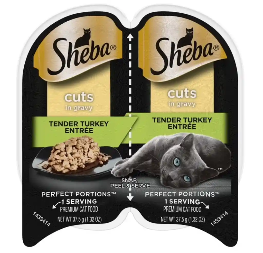 Detalles del producto Los gatos saben lo que quieren: el delicioso sabor de Sheba Perfect Portions Cuts In Gravy comida húmeda para gatos. Elaborados con carne real, los suculentos cortes de pavo tierno en una deliciosa salsa gravy ofrecen una comida húmeda para gatos que a tu felino le encantará. Con humedad añadida para mantener a tu gato hidratado, este alimento para gatos rico en nutrientes está hecho con aminoácidos esenciales y contiene grasas saludables y ácidos grasos. Perfecto para comedores exigentes, este alimento húmedo para gatos tiene dos bandejas convenientes y porcionadas sin sobras desordenadas. Sheba Wet Cat Food está formulado sin granos, maíz ni soya y no contiene subproductos ni rellenos, ni sabores artificiales; aunque pueden estar presentes cantidades mínimas debido al contacto cruzado durante la fabricación. Tu felino favorito disfrutará de este delicioso alimento para gatos que apoya un sistema inmunológico saludable. Saborea cada momento delicioso con Sheba Perfect Portions Wet Cat Food Cuts in Gravy. La comida húmeda para gatos es una comida rica en nutrientes, premium y deliciosa, formulada para el mantenimiento de gatos adultos Elaborado con carne real y rico en proteínas, con sabores irresistibles en una variedad de texturas Contiene vitaminas y minerales esenciales para ayudar a apoyar la salud general de tu gato El sabor irresistible de la comida húmeda para gatos Sheba es perfecto para comedores exigentes Dos porciones gourmet con cero sobras desordenadas en cada comida: solo rompe, despega y sirve Instrucciones de alimentación Alimentar a gatos adultos con 4 a 5 porciones por cada 2.3 kg de peso corporal al día. En el caso de gatas gestantes o en periodo de lactancia, ofrecer de 2 a 3 veces su cantidad habitual. Para gatitos, administrar de 5 a 9 porciones al día. Instrucciones de cuidado del producto No aplica. Ingredientes Agua, subproductos de aves, pollo, pavo, plasma animal, almidón de tapioca, producto de huevo deshidratado, glicina, cloruro de potasio, aceite de pescado, sabor natural, sulfato de magnesio, sal, cloruro de colina, goma xantana, tripolifosfato de sodio, taurina, goma guar, DL-metionina, mononitrato de tiamina, suplemento de vitamina E, sulfato de zinc, sulfato ferroso, color caramelo, sulfato de manganeso, sulfato de cobre, clorhidrato de piridoxina, yoduro de potasio, suplemento de vitamina D3, ácido fólico, complejo de bisulfito sódico de menadiona. Ingredientes activos Agua, subproductos de aves, pollo, pavo, plasma animal, almidón de tapioca, producto de huevo deshidratado, glicina, cloruro de potasio, aceite de pescado, sabor natural, sulfato de magnesio, sal, cloruro de colina, goma xantana, tripolifosfato de sodio, taurina, goma guar, DL-metionina, mononitrato de tiamina, suplemento de vitamina E, sulfato de zinc, sulfato ferroso, color caramelo, sulfato de manganeso, sulfato de cobre, clorhidrato de piridoxina, yoduro de potasio, suplemento de vitamina D3, ácido fólico, complejo de bisulfito sódico de menadiona.