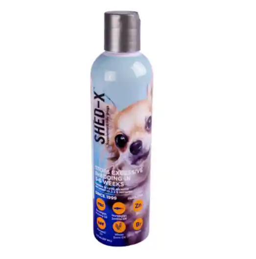 Shed-X es un suplemento nutricional diario, 100% natural, diseñado para reducir drásticamente la caída excesiva de pelo en perros (y gatos) en 3-6 semanas. Rico en ácidos grasos Omega 3 y 6, zinc y vitaminas, mejora la salud de la piel y el pelaje