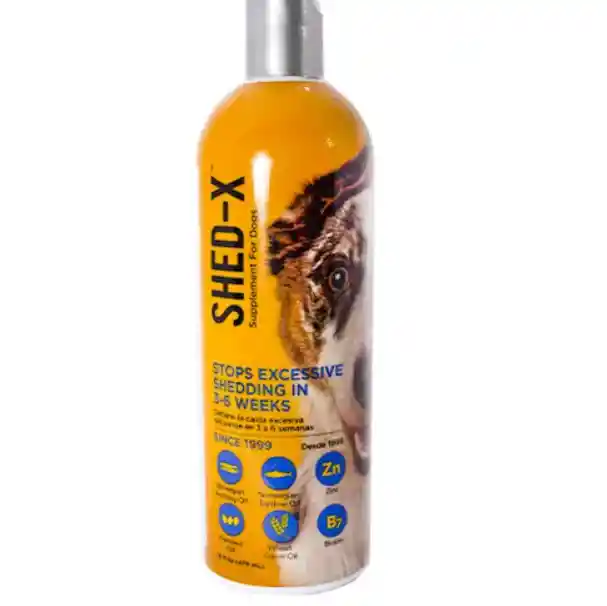 Shed-x es un suplemento para perro rico en Antioxidantes, ácidos grasos y vitaminas, es la emulsión ideal para cuidar el pelo y piel de tu perro.. Evita la excesiva caída de pelos en tu perro. Fácil administración vía oral con buena palatabilidad, altamente palatable. (Le gustará a tu perro) Resultados rápidos, pelaje más saludable y manejable en 3 a 4 semanas. Alivia la picazón, evita la piel escamosa.