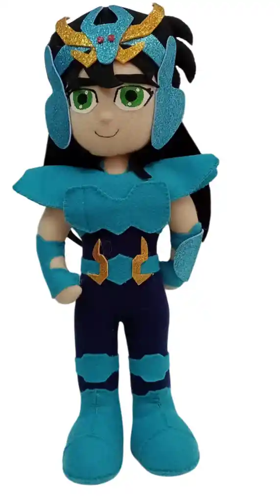 Muñeco artesanal en tela inspirado en un valiente caballero dragón. Confeccionado a mano con gran detalle, luce una armadura azul con toques dorados y un casco ornamental que resalta su carácter guerrero. Sus ojos verdes transmiten fuerza y nobleza, convirtiéndolo en una pieza única para coleccionistas y fanáticos de héroes legendarios. Ideal como artículo decorativo, regalo especial o parte de una colección de personajes épicos en tela.