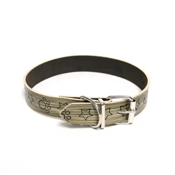 Ollar Para Mascota en Cuero Sintético Con Diseño gabado de Estrellas y Huellas. Cuenta Con Hebilla Metálica y Seguro Para su Ajuste de Tamaño. Su Cara Interna es Suave Con la Mascota. Características: Color: Negro. Café Claro y Café Oscuro. Dimensiones: Largo: 52 cm x Ancho: 2.5 cm. Peso Aproximado: 58 g. Material: Cuero Sintético.