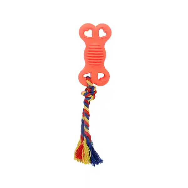 Juguete Para Mascotas Elaborado en Caucho Rígido de 10 Centímetros. Sus Extremos Son Elaborados en Hilo Entrelazado de Alta Resistencia Para Una Mayor Duración. Diseño de Hueso Con Orificios en Forma de Corazón en Relieve Para Estimular y Proteger la Mordida de la Mascota. Grandes Momentos de Diversión Para tu Mascota. Características: Dimensiones: Largo: 10 cm. Material: Caucho Rígido.