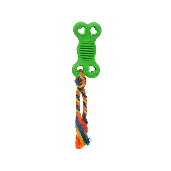 Juguete Para Mascotas Elaborado en Caucho Rígido de 10 Centímetros. Sus Extremos Son Elaborados en Hilo Entrelazado de Alta Resistencia Para Una Mayor Duración. Diseño de Hueso Con Orificios en Forma de Corazón en Relieve Para Estimular y Proteger la Mordida de la Mascota. Grandes Momentos de Diversión Para tu Mascota. Características: Dimensiones: Largo: 10 cm. Material: Caucho Rígido.