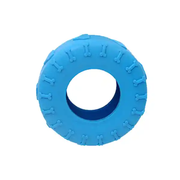 Juguete Para Mascotas Elaborado en Caucho de 9.5 Centímetros. Diseño de Llanta Con Texturas en Relieve Que Ayudan a Estimular y Proteger la Mordida de tu Mascota. Características: Dimensiones: Largo: 9.5 cm. Material: Caucho.