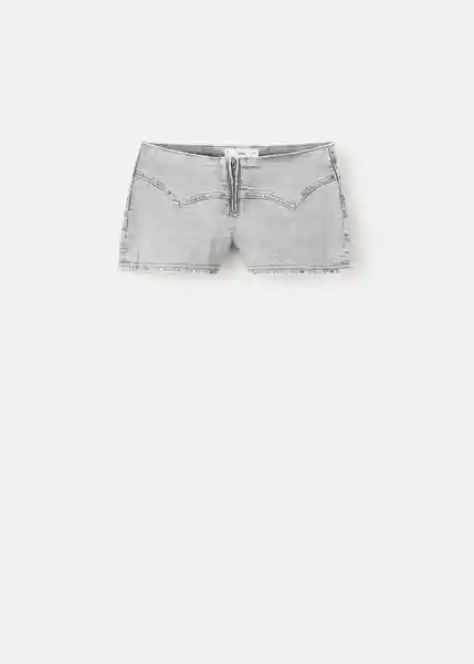 Cierre de Cremallera Cintura Baja Diseño Corto Estilo Tejano Vaquero Tachuelas Decorativas Tejido de Algodón Tejido Elástico - 27045938_Tg.