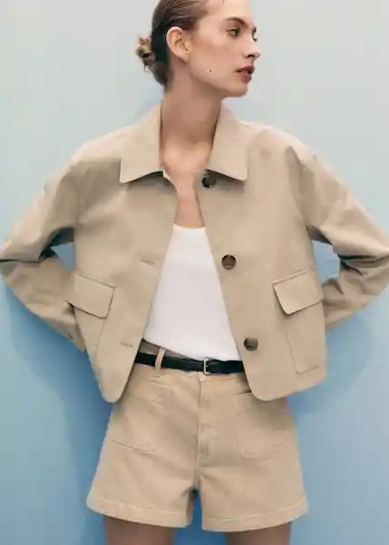 Cierre Delantero de Cremallera y Botón Diseño Corto Diseño Recto Dos Bolsillos de Parche Frontales Exclusivo Online Tejido de Algodón Estilo Tejano Vaquero Tiro Alto Trabillas - 87020605_07.