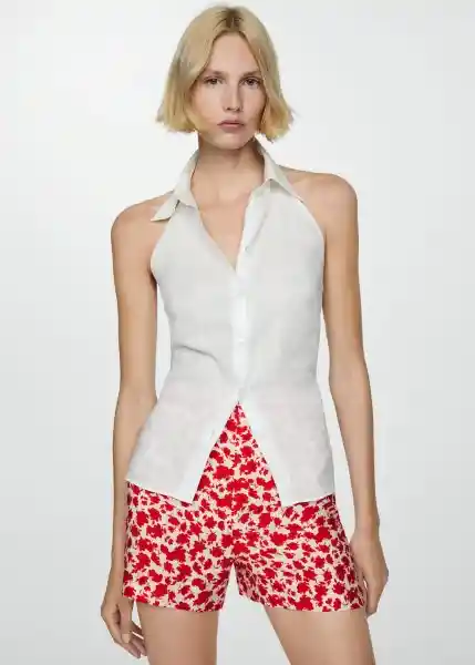 Cierre Oculto de Botón Gancho y Cremallera Diseño Corto Estampado Floral Tejido Fluido Tiro Medio - 67098642_70.