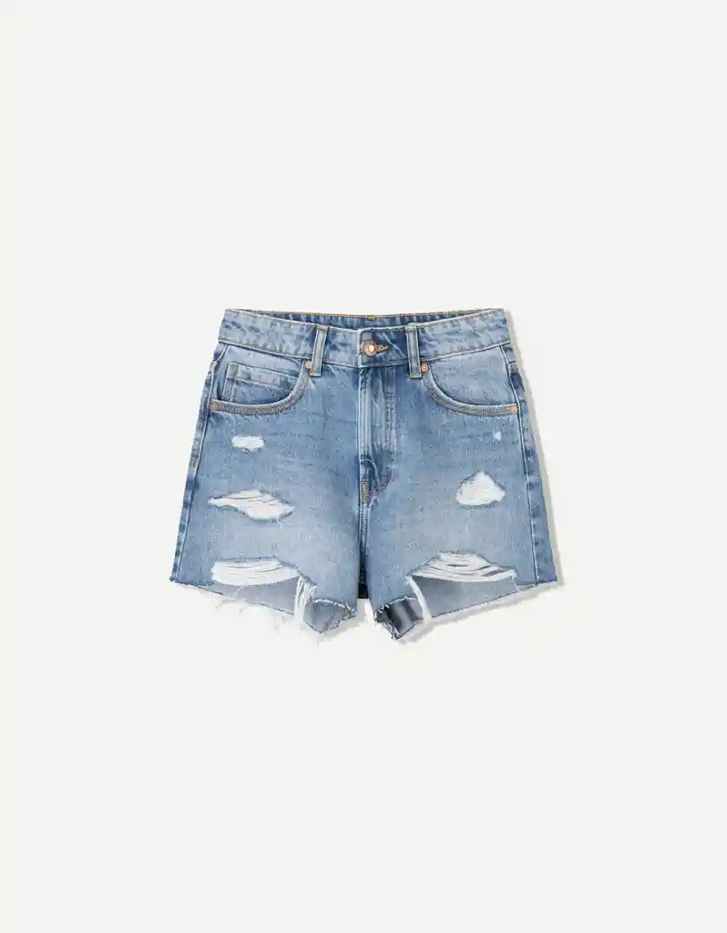 SHORT DE JEANS RIGIDO CORTO CON ROTO TALLA 12 CON CIERRE CON BOTONES