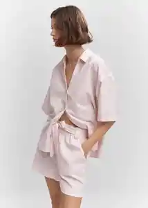 Cintura Con Goma Elástica Diseño Corto Diseño Recto Dos Bolsillos Laterales el Color Rosa es Exclusivo Online Lazo Desmontable a la Cintura Sin Cierre Tejido Mezcla de Algodón y Lino Tiro Alto Total Look - 57030150_81.