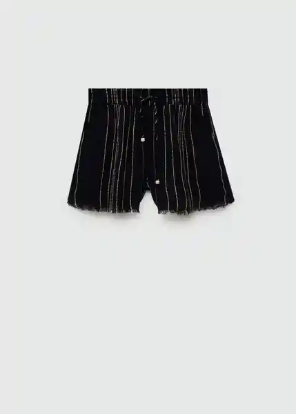 Bajo Deshilachado, Cintura Elástica Con Cierre de Lazo, Diseño Corto, Diseño de Rayas, Diseño Recto, Tejido Mezcla de Algodón, Total Look - 77090355_99.