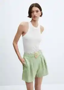 100% Lino Cierre de Cremallera y Gancho Cinturón Con Cierre de Hebilla Detalle de Pinzas Diseño Corto Diseño Recto Tiro Alto Trabillas - 67040408_40.