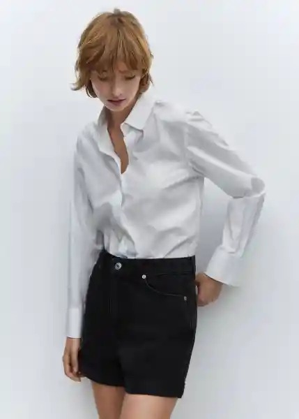 Bajo Con Vuelta Bolsillos de Parche en la Parte Posterior Bolsillos Laterales Cierre de Cremallera y Botón Diseño Corto la Modelo Mide 178 y Lleva Una Talla 36 Tejido de Algodón Estilo Tejano Vaquero Tiro Alto Trabillas - 67120260_Tn.