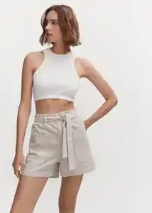 Cierre de Cremallera y Botón Cinturón Ajustable Diseño Corto Dos Bolsillos de Parche en la Parte Delantera Dos Bolsillos de Ribete en la Parte Posterior Paperbag Tejido de Algodón Estilo Tejano Vaquero Tiro Alto - 57040073_05.